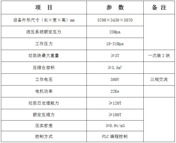 采用垂直壓縮方式,壓縮力大,垃圾塊壓實密度大。