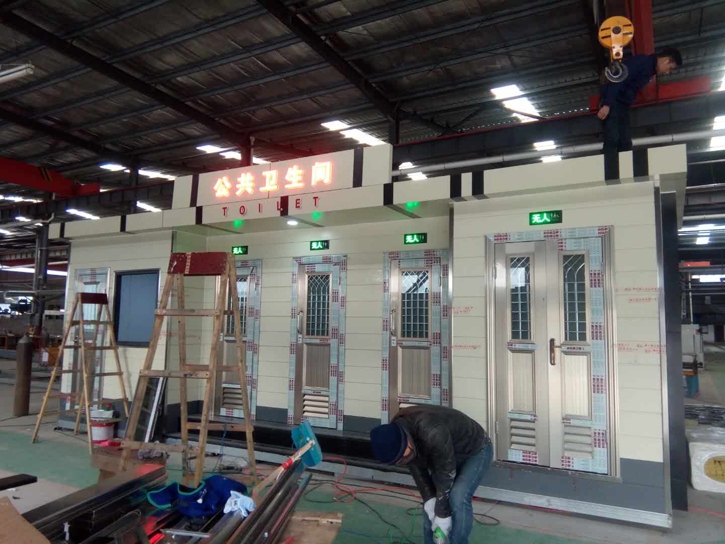 1、房體結(jié)構(gòu): 采用輕鋼龍骨結(jié)構(gòu),鋼材全部使用國家標(biāo)準(zhǔn)鍍鋅鋼材。根據(jù)房體的大小特選用國標(biāo)方管(50-100)焊接而成。鍍鋅管厚度為2.8mm,方管經(jīng)過除銹后進行鍍鋅、防腐處理。這樣就會延長廁所使用壽命。