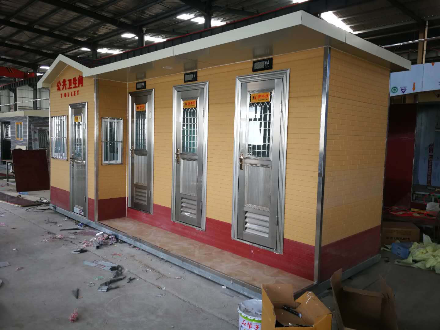 1、房體結(jié)構(gòu): 采用輕鋼龍骨結(jié)構(gòu),鋼材全部使用國(guó)家標(biāo)準(zhǔn)鍍鋅鋼材。根據(jù)房體的大小特選用國(guó)標(biāo)方管(50-100)焊接而成。鍍鋅管厚度為2.8mm,方管經(jīng)過徹底除銹后進(jìn)行鍍鋅、防腐處理,處理后的結(jié)構(gòu)使用壽命均在20年以上。這樣就會(huì)延長(zhǎng)廁所使用壽命,使整座廁所的穩(wěn)固性更強(qiáng)、更加結(jié)實(shí)耐用。